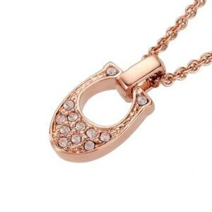 Coach Signature Pave “C” Pendant Necklace Rose-Gold New