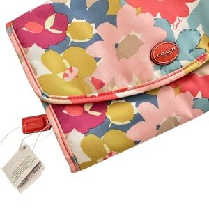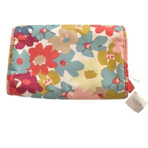 Coach Signature Peach Paisley Satin Hanging Cosmetic Kit Toiletry Travel Bag NEW