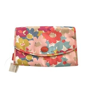 Coach Signature Peach Paisley Satin Hanging Cosmetic Kit Toiletry Travel Bag.