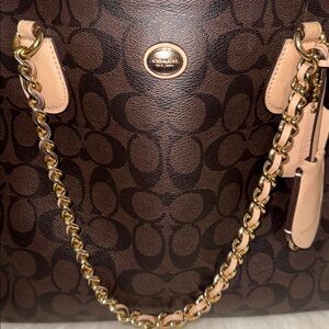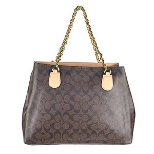 Coach Signature Peyton Chain Tote Brown #F32835 EUC