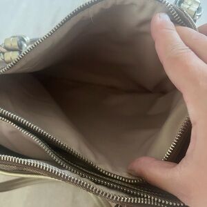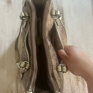Tan and gold coach purse. Signature Peyton double zip medium handbag. In great condition. Area on the inside with a stain from a pen as shown in photos. Coming from a smoke free/pet friendly home. Bundle to save! Fast shipping!