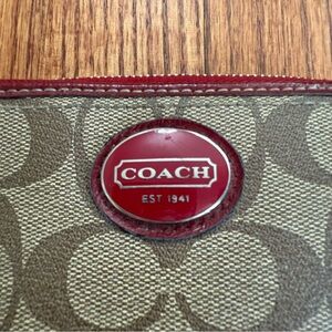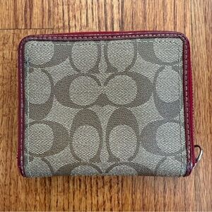 Coach Signature Peyton Zip Around Wallet in Khaki and Crimson