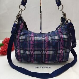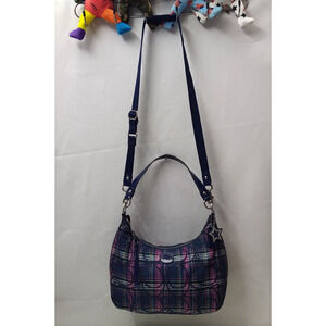 Coach Signature Purple Canvas Round Logo Zipper Closure Crossbody Shoulder Bag