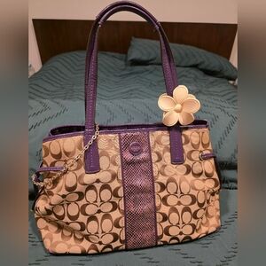 EUC Coach tote bag in purple and faux python.