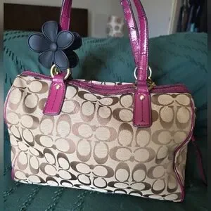Coach Signature Python Stripe Satchel Raspberry Pink