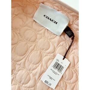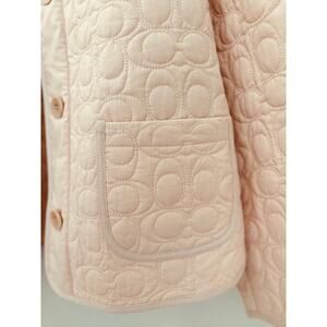 New With Tags Coach Signature Logo Quilted Cotton Jacket. Womens size medium, pale shell pink. Approx measurement: pit to pit 23in, shoulders 17.75, sleeve length 23in, length shoulder to hem 22.5.