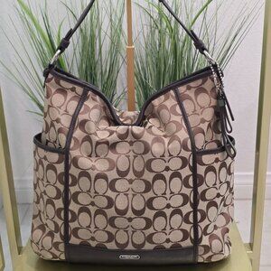 Coach Signature Shoulder Bag with leather trim. Gently used, still like new in excellent condition. Also has matching loafers size 8 1/2 sold separately.