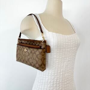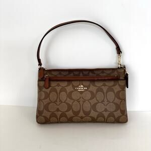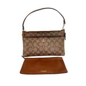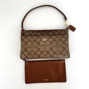 Coach Signature Shoulder Bag Baguette Pop-Out Removable Pouch F65806 Brown
