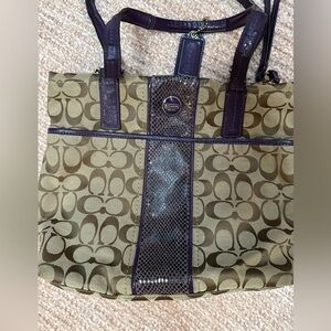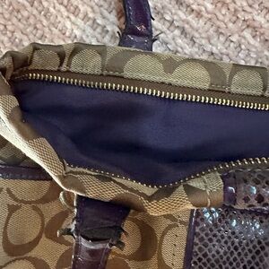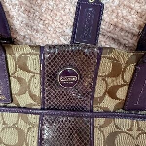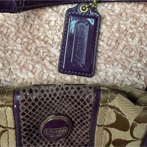Coach Signature Shoulder Bag Canvas Beige Purple Brown Authentic from Coach