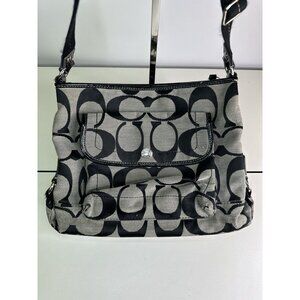 Coach Signature Shoulder Bag With Charm F16558 Black Beige /Uo Women'S
