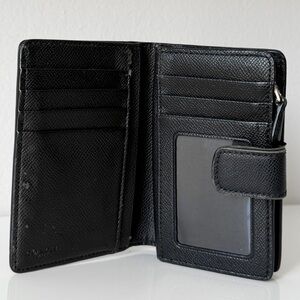 -Snap button front compartment with ID window and multiple card slots