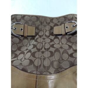 Coach Signature Soho Duffle Shoulder Handbag Jacquard Canvas Leather Trim Purse