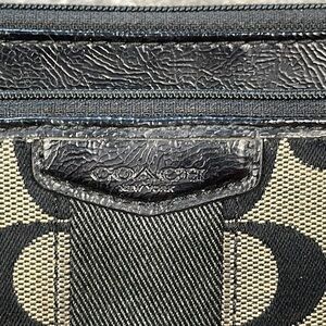 Coach Signature Stripe Double Zip Wristlet Pouch Wallet Black Gray