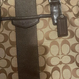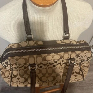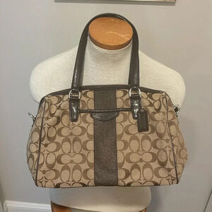 Coach - Signature Stripe Nancy Satchel Handbag 28505 - Khaki Brown Mahogany