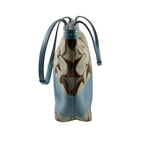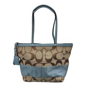 Coach Signature Stripe Purse Tote Shoulder Bag Khaki & Powder Blue F13548