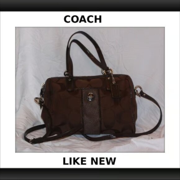 Coach Signature Stripe Satchel Carryall Convertible Shoulder Bag HandBag F 24364