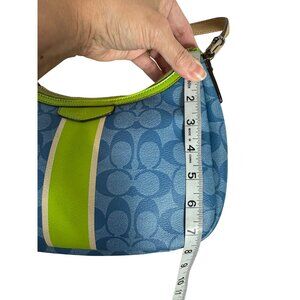 Coach Signature Stripe Shoulder Baguette Demi Bag Blue Lime Green F29942