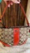 Stylish Coach crossbody with signature tan pattern. Bold Orange accents add a pop of color. Perfect for everyday use.