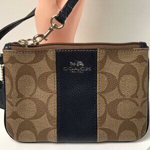 Coach Signature Tan/Navy Wristlet w/hangtag