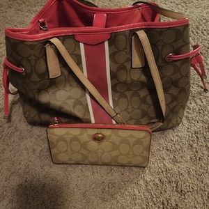 Raspberry and Brown Coach Signature Purse. 5 years old in fair condition.