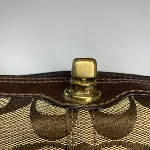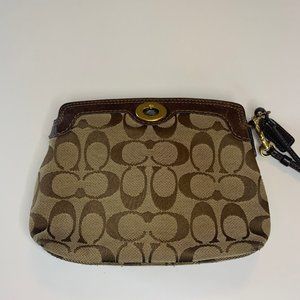 Coach Signature Turnlock Wristlet Khaki w/Leather