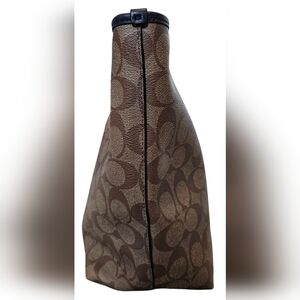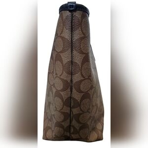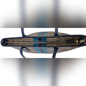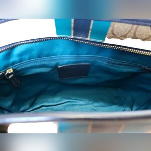 Excellent condition inside and out! Coach Signature 'C' Varsity Stripe Zip tote/handbag in khaki/watermelon/navy. Original hang tag and gold hardware. 2 small rub marks on bottom exterior corners from storage and 2 small marks in the interior pocket at bottom, can be cleaned. All leather is in great condition! Color may vary due to camera lighting.