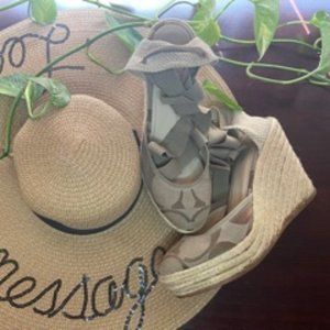 Coach Signature Wedge Espadrille Ankle Wrap Heel