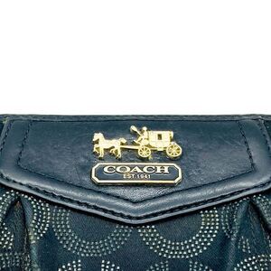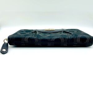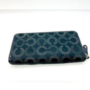 Coach Signature Black Dotted Zip Around Women’s Wallet Approximately Measurement:H 4”/W 8” Pre-owned Great Condition