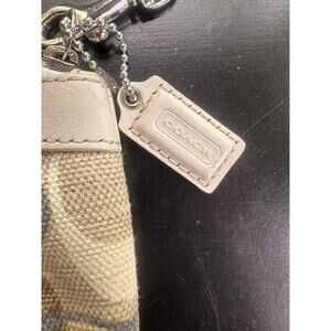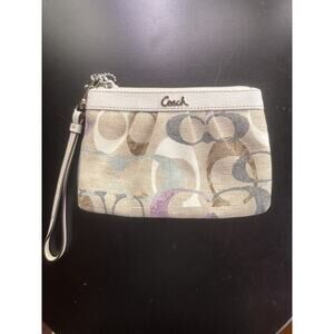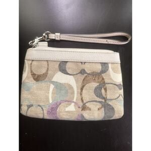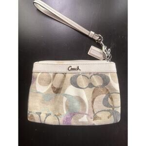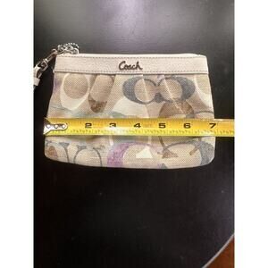 This Coach Signature Wristlet is an ideal accessory for women who love to travel or want to carry their essentials with them while being fashionable. The wristlet is made of high-quality canvas material with a colorful logo pattern that adds to its style. The bag comes with a zippered closure and a leather wrist strap that gives a comfortable grip.