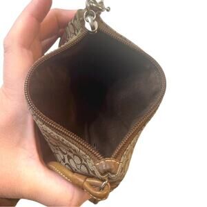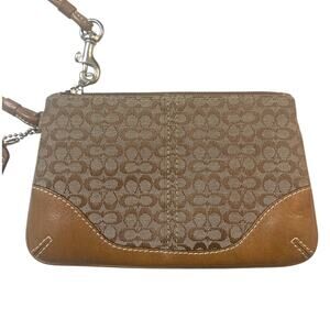 Coach Signature Wristlet Khaki Brown Canvas & Leather Small Pouch