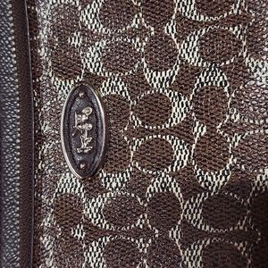 Coach Signature Wristlet Mini Bag Clutch Wallet Brown Tan Silver Women's