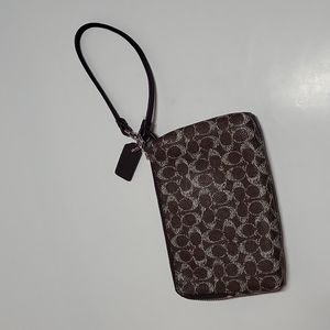 Coach Signature Wristlet Mini Bag Clutch Wallet Brown White Silver Women's OS