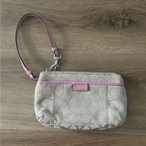Coach Signature Wristlet, Vintage, Beige & Pink Trim - Like New