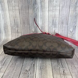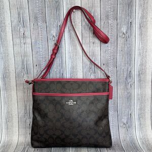 Coach Signature Zip File Crossbody Bag Brown/ True Red Purse Adjustable