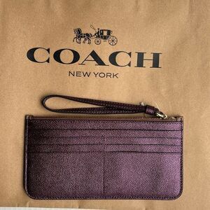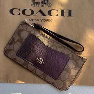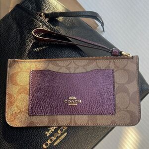 Coach Signature Zip Top Brown and Purple Wristlet