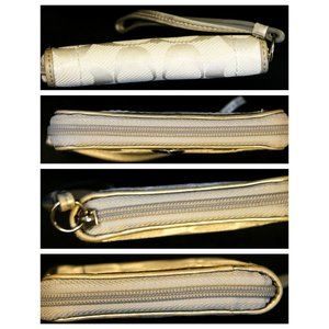 Coach Signature Zipper Wallet Wristlet ID White Folding Canvas Multiple Pocket