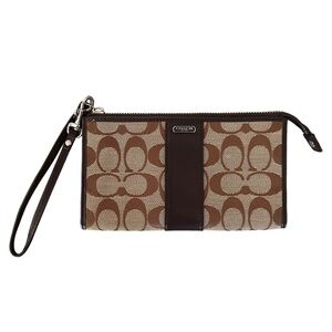 Coach Signature Zippy Wallet in Khaki/Mahogany