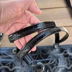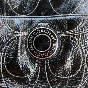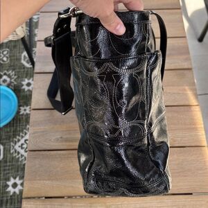 Coach Signature stitched Black patient leather diaper Bag purse laptop carrier