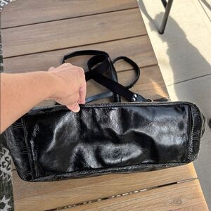 This bag is huge and comes with a ton of storage. It’s in amazing used condition - just a couple of very very small marks pointed out by finger. Has a removable crossbody strap.