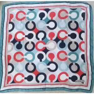 Coach Silk Scarf Blue Orange Signature "C" Grapfic Logo 26" Square