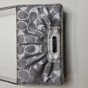 Coach Silver C Embroidered Crossbody with Chain Strap Gray Card Holder