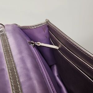 Elevate your style with this stunning Coach Silver C Embroidered Crossbody with Chain Strap and Gray Card Holder. This chic accessory is perfect for adding a touch of luxury to any outfit. The silver C embroidery on the front adds a subtle yet sophisticated detail, while the chain strap adds a trendy edge.