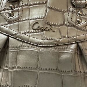 Elevate your style with this stunning Coach bag. Featuring a chic silver croc-embossed design, it's perfect for any occasion. The luxurious texture and elegant color make it a must-have accessory.