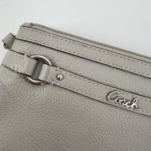 Coach Silver Cursive Logo Gray Pebbled Leather Wristlet 2010s Vintage
