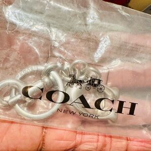 Stylish Coach keychain. Features a silver finish. Perfect for bags.