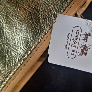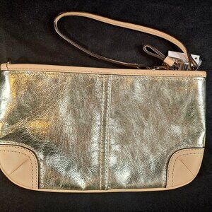Coach Silver Metallic and Beige Leather Wristlet - New with Tags