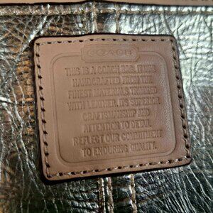 This Coach Silver Metallic and Beige Leather Wristlet is a stylish and small rectangular bag featuring a zip closure, silver hardware, and a metallic finish. The exterior is made of leather with a solid silver color, while the interior has inner pockets and is lined with beige canvas. The wrist strap is made of beige leather, making it a versatile accessory for women looking to add a touch of metal to their ensemble. Perfect for carrying essentials in a trendy and chic way.
