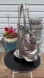 Chic Coach tote in metallic gray leather. Features front zip pocket and signature tag. Perfect blend of style and utility. This is used.
