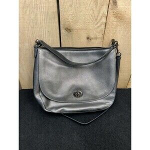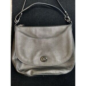 Coach Silver Pebbled Leather Turn lock Hobo Bag Crossbody #36762.