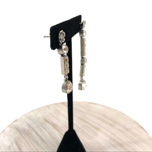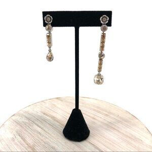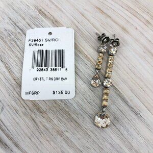 Coach Silver Rose Crystal Teardrop Asymmetrical Pierced Earrings